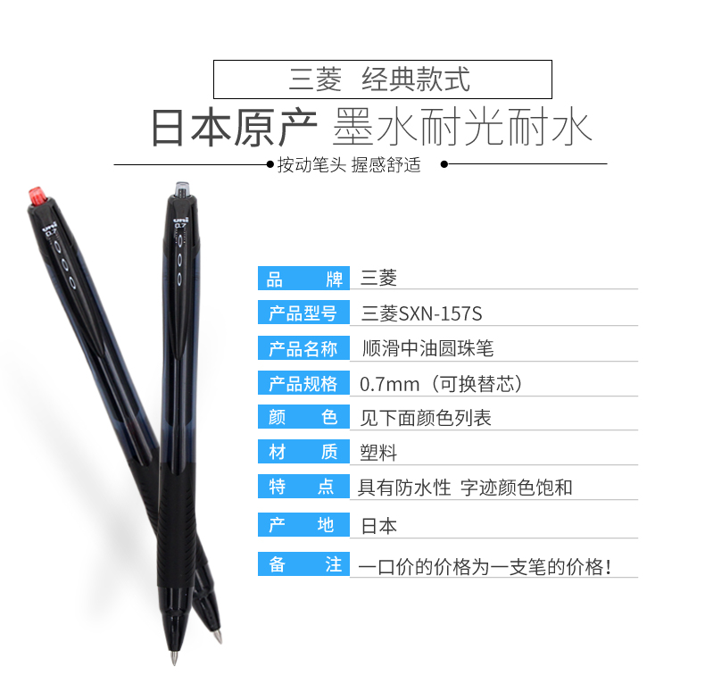 日本三菱JETSTREAM/圆珠笔/中油笔SXN-157S 超顺滑/0.7mm 签字笔 红色 15支装