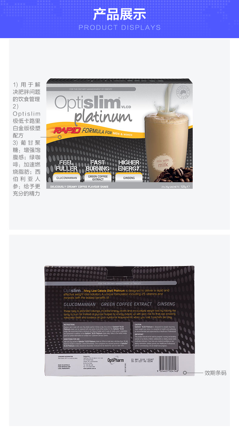澳洲Optislim代餐粉白金版饱腹营养餐代餐奶昔健康餐21包x25克