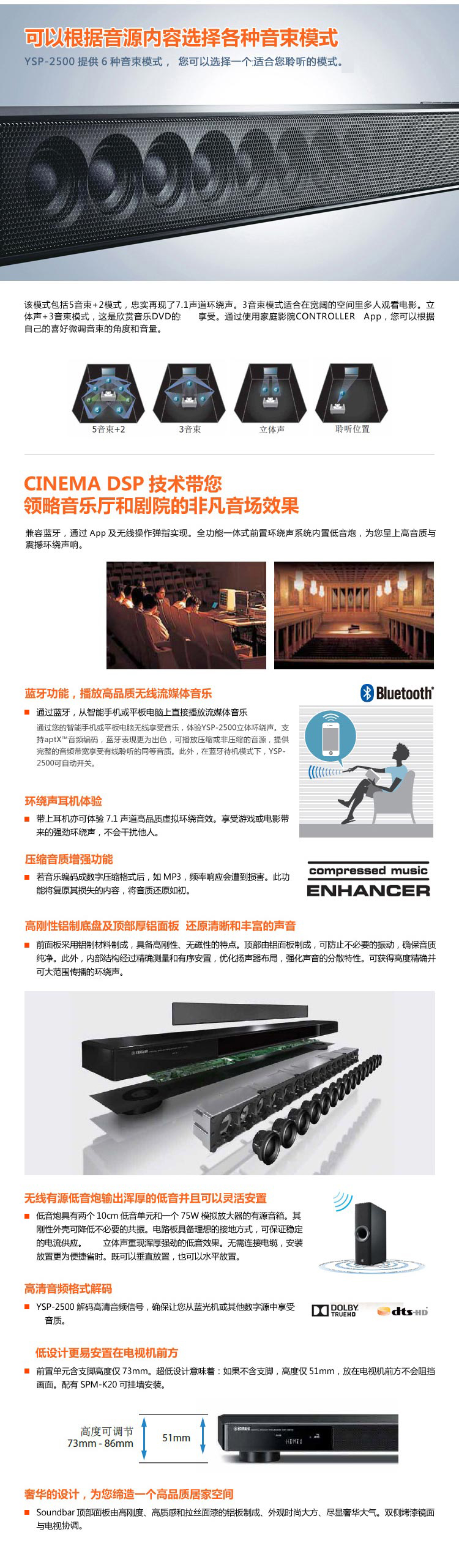 YAMAHA 雅马哈 YSP-2500 7.1 环绕声效 一体化数字投音机 黑色